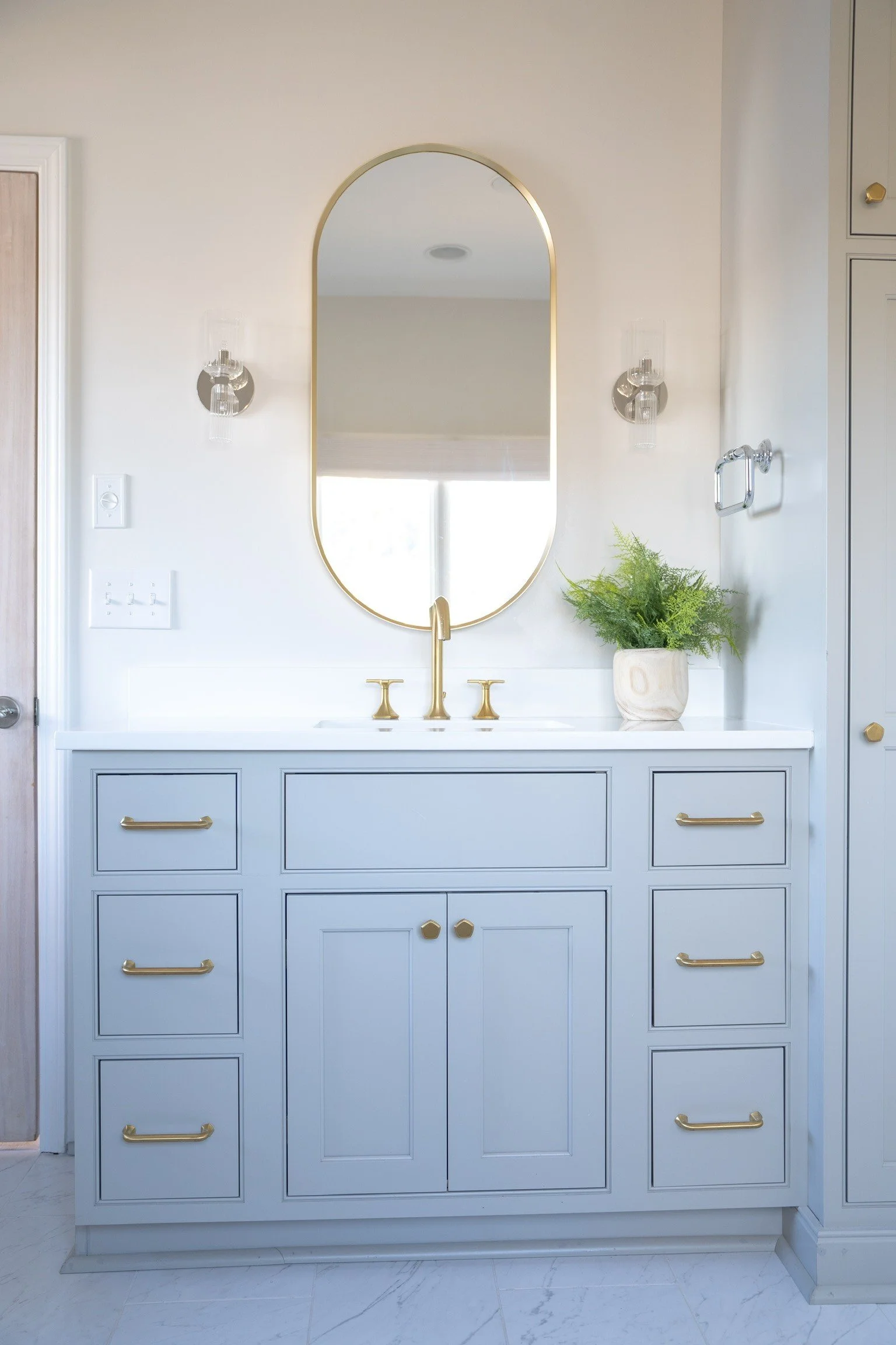 These finishes are showing up everywhere — from faucets and shower systems to cabinet hardware and lighting. The key to making the look feel cohesive is carrying the same finish throughout the space rather than mixing too many competing tones.