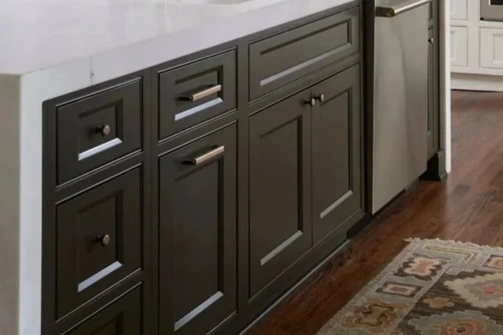 Hardware should complement both your cabinet finish and overall design style. For example, Denim Blue pairs beautifully with oil-rubbed bronze. Silas-stained cabinetry looks great with Ash Gray hardware, and warm shades like Saddle pop against brushed brass. Our design team can help you test different combinations in person.Are darker cabinet colors harder to maintain?
