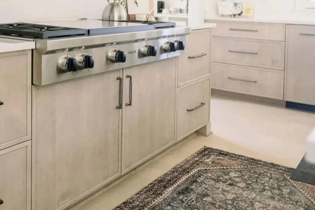 White Sand is a soft, neutral cabinet finish that strikes the perfect balance between bright and warm. With a subtle beige undertone, it offers the clean look of light cabinetry without feeling stark or cold. In this kitchen, the White Sand finish on our Eclipse Cabinetry enhances the natural wood grain, creating a sophisticated yet inviting backdrop that pairs effortlessly with stainless steel appliances, brushed hardware, and layered textures, such as rugs and artwork. Timeless and versatile, White Sand cabinetry complements both modern and transitional kitchen designs beautifully.